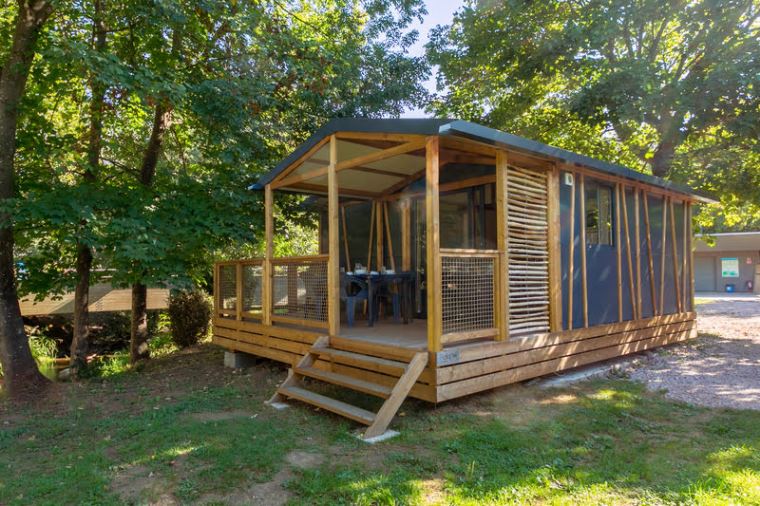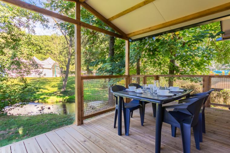 Extérieur : Terrasse couverte avec salon de jardin et 2 chiliennes.
