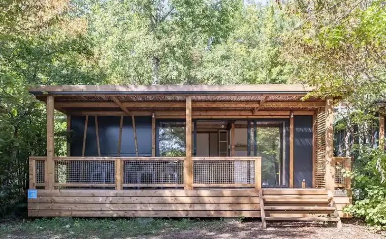 Coin nuit : une chambre avec 1 lit double (160×200), deux chambres avec 2 lits simples (80×190) côte à côte et superposé en angle, oreillers et couvertures et/ou couettes fournis.